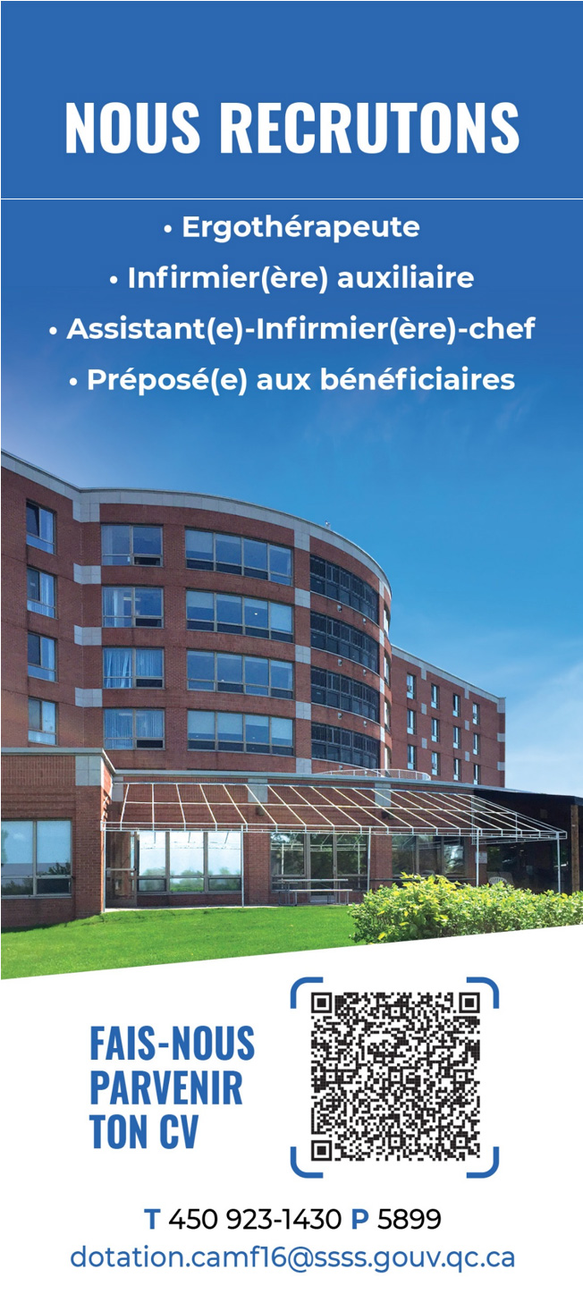 Vous désirez faire carrière dans un environnement de travail chaleureux, dynamique où le travail d'équipe et le bien-être des employés sont au cœur des priorités? Consultez sans tarder les perspectives d'emplois qui s'offrent à vous.